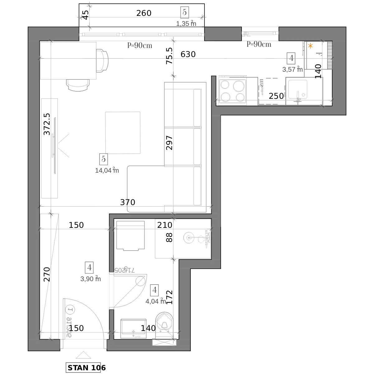 | S 106 | NAZIV PROSTORIJE | OBRADA PODA | M2 |